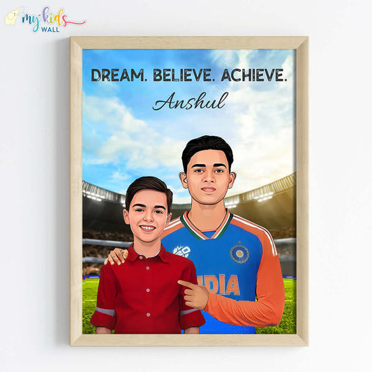 Cricket Champ with Yashasvi Jaiswal Personalized Motivational Portrait (Framed)