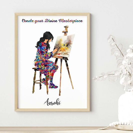 Painting Artist Girl Personalized Motivational Wall Art (Framed)