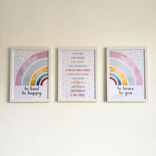 Radiate Positivity Rainbow Affirmations Personalised Wall Art (Framed Set of 3)