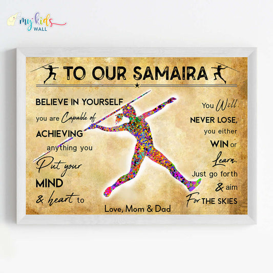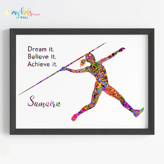 Javelin Thrower Female Personalised Motivational Wall Art (Framed)