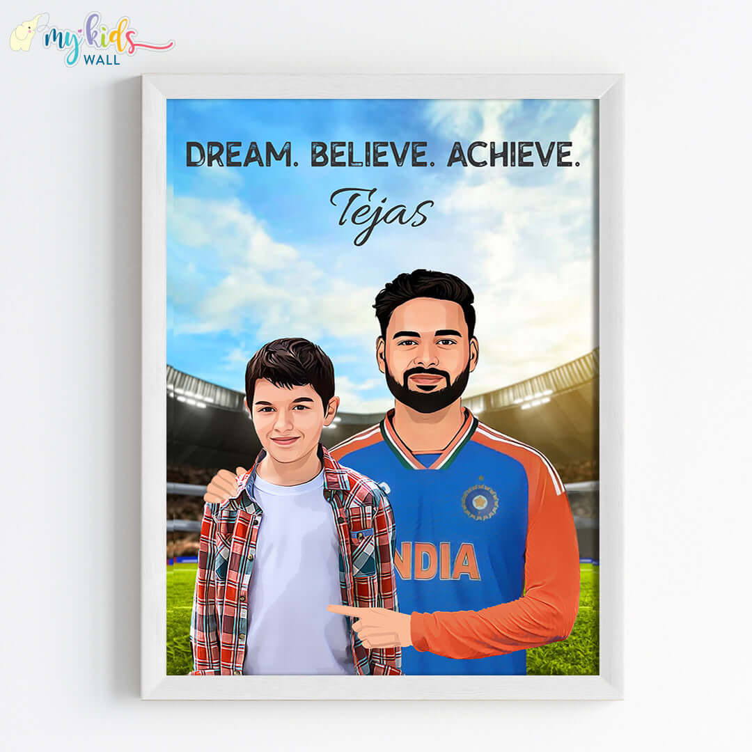 Cricket Champ with Rishabh Pant Personalized Portrait (Framed) New