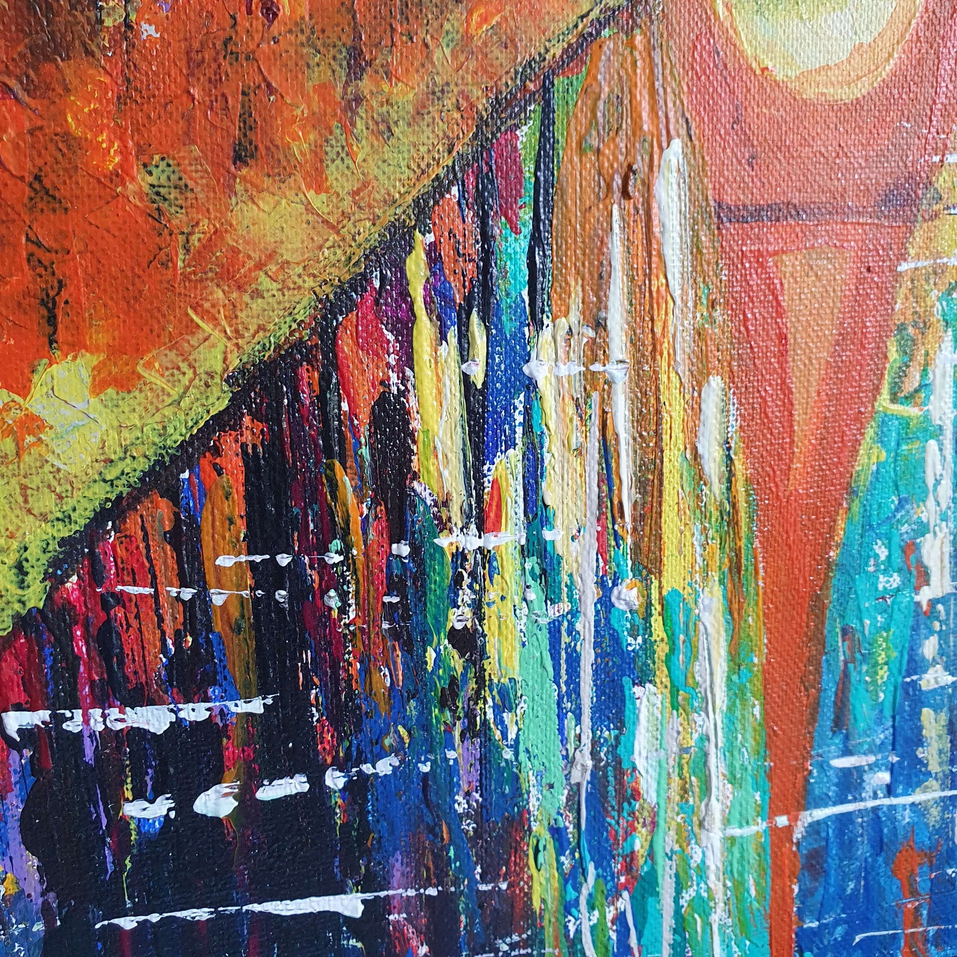 This acrylic painting, created using a unique combination of knife and brush techniques, bursts with color and emotion on high-quality canvas.