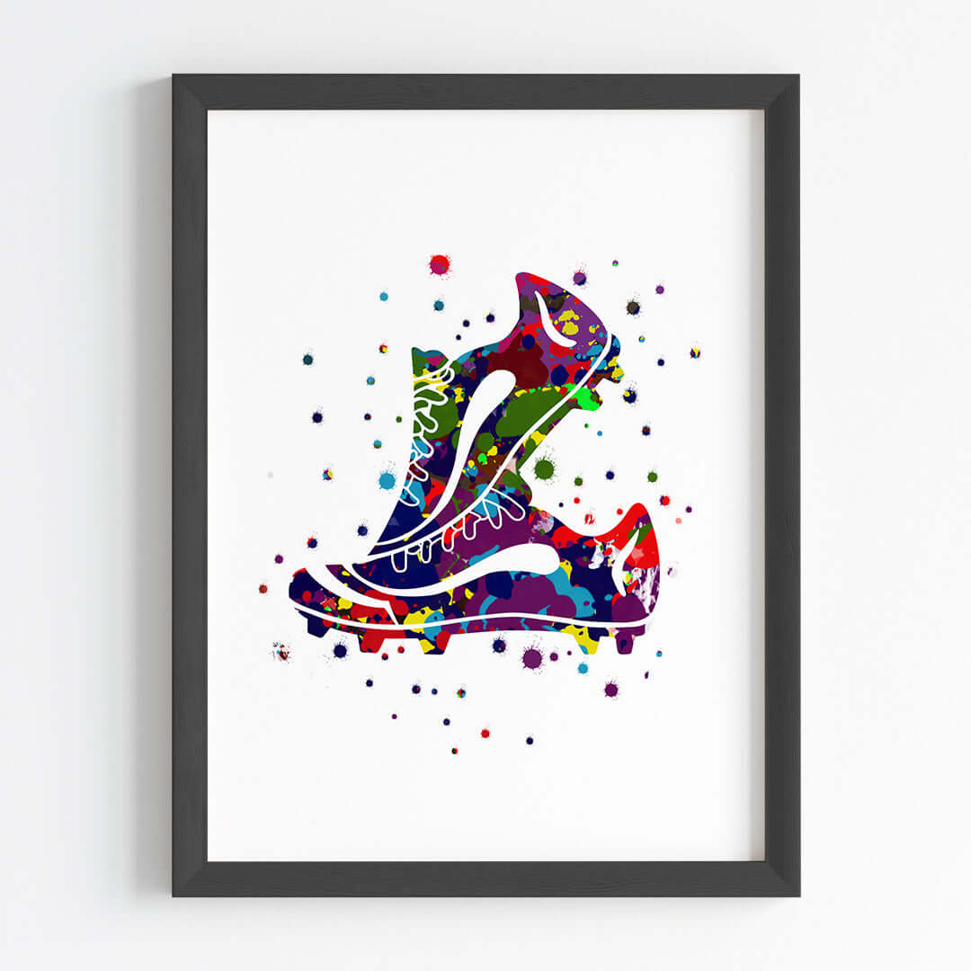 This football wall painting set of three vibrant frames features a watercolor effect with splatters - a perfect kid personalised wall art to add excitement to any room. Add your name and jersey number to the center frame to make it truly yours!