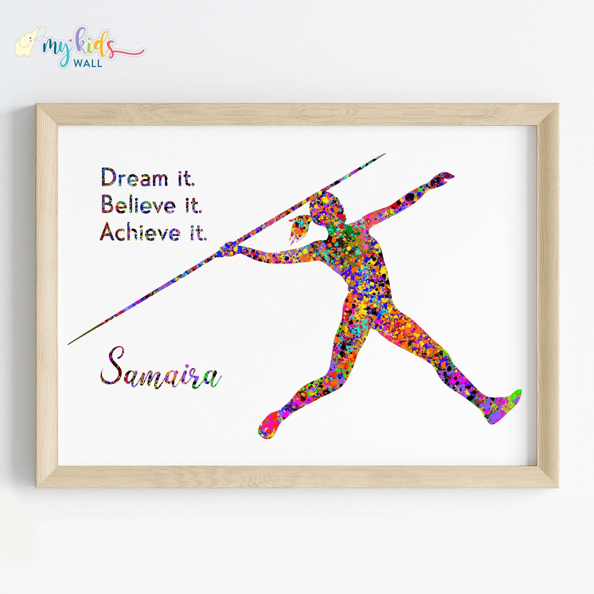 This framed poster with motivational message is an ideal present for a javelin throw Female player that will be cherished for a lifetime!
